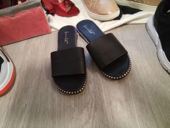 "Bonnibel" Black Faux Leather Slide Accent In Gold Size:7$15Washington, DC