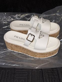 Prada White Platform Sandals with Cork Wedge $650Pompano Beach, FL