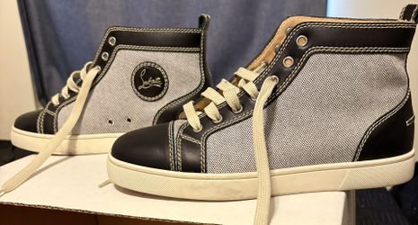 Christian Louboutin High-Top Sneakers Black White Canvas Leather Logo EU 42$550Pompano Beach, FL
