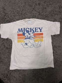 Men's White Mickey Mouse & Pluto Retro Stripe T-Shirt$15Oxnard, CA