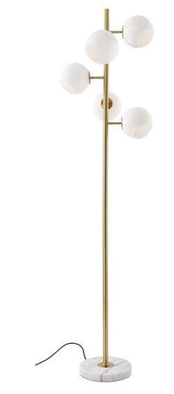 NEW! NEW! KCO Mid Century Modern Gold Floor Lamp 5 Globe Contemporary Brass Free Standing w/White Shade$150Tampa, FL