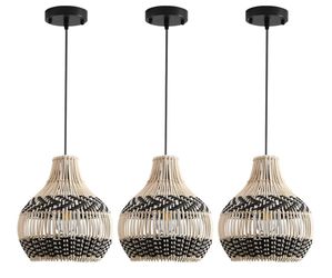 NEW! 3-Pack Faux Rattan Pendant Light Fixture Mini Hand-Woven Black White Rattan Chandelier 10.24" Boho Wicker Hanging Lamp for Dining Living Bedroom $150Tampa, FL