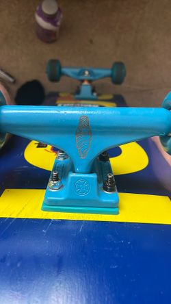Enjoi is the skateboard brand. the size is 8.0 Its fairly new. 7.5" Lizzie Armanto blue ice cream cone blue Independent trucks. 53" wheels$45Ankeny, IA
