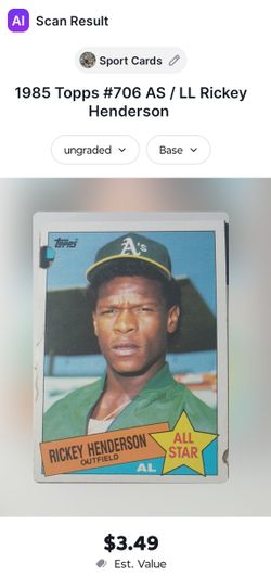 Rickey Henderson Baseball Card $1Los Angeles, CA