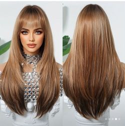 Elegant Women'S Wig Light Brown Long Straight Layered Ends Fashion for Daily Wear with Matte Finish, Tang Long Fiber, 100% Density Rose Net Cap, Versa$40Escondido, CA