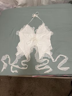 BRAND NEW white lacy Y2K style fairycore lace halter cami tank top with sheer mesh, ruffled details, and a tie-front closure$8Chula Vista, CA