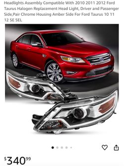 Taurus Halogen Replacement Head Light, Driver and Passenger Side,Pair Chrome Housing Amber Side Headlights Assembly Compatible 2010 2011 2012 Ford$160Elk Grove, CA