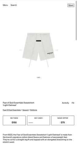 Fear of God Essentials Sweatshort 'Light Oatmeal' Size S$100Elk Grove, CA