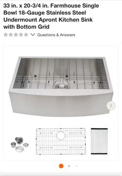 33 in. x 20-3/4 in. Farmhouse Single Bowl 18-Gauge Stainless Steel Undermount Apront Kitchen Sink with Bottom Grid$80Elk Grove, CA