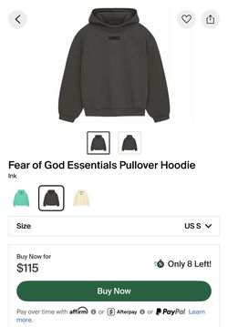 Fear of God Essentials Pullover Hoodie Dark Green Size Small$100Elk Grove, CA