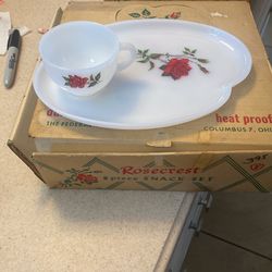 Vintage Federal Glass Rosecrest 8 PC Luncheon Snack Tea Set Red Rose Cup Plates$45Spring Hill, FL