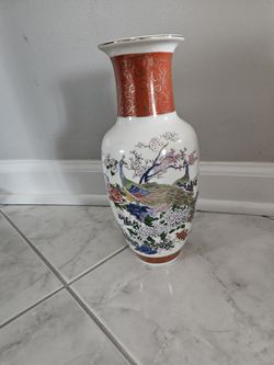 Vintage Japan Hand Painted Satsuma Porcelain Vase 1979 Peacocks 10.5” height$10Independence, OH