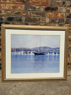 Vintage Framed Coastal Harbor Art Print – Signed A. Bourrie – Large Wall Art (32.5” H x 38” W)$100Dallas, TX