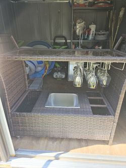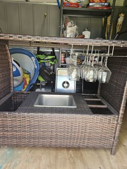Outdoor Wicker Bar, Removable Ice Bucke Glass Top. Wine Glass Holder $115Bethpage, NY