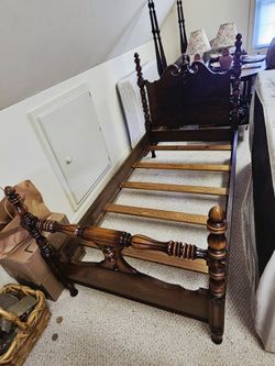 Antique Circa 1930 Continental Furniture Company Sheraton Style Walnut Twin Size Bed Frame with Side Rails $325Powdersville, SC