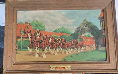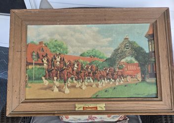 ANTIQUE 50s BUDWEISER CLYDESDALES ON THE FARM - FLSOLID OAK WORM HOLE FRAME$100Ormond Beach, FL