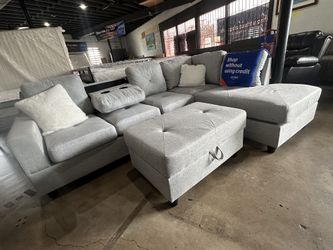 New Light Gray Sectional w/ Ottoman - $0 Down, Flexible Payments Available$899San Antonio, TX