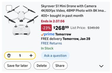 Skyrover S1 Mini Drone with Camera 4K/60fps Video, 48MP Photo with 8K Image Quality, 3-Axis Gimbal Stabilization, 39,000ft Video Transmission, 40-Min $200Hialeah, FL