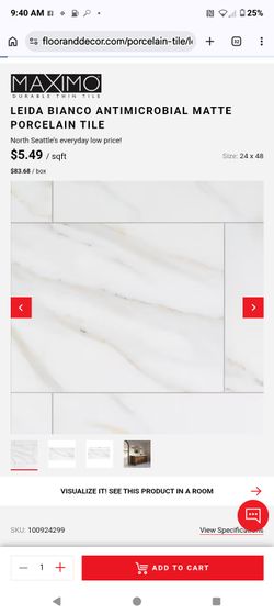 Leida Bianco Antimicrobial Matte Porcelain Tile (58 PIECES) (READ DESCRIPTION)$1,000Kent, WA