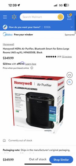 Honeywell Bluetooth Smart True HEPA Home Air Purifier - Black, HPA8350B$60Fort Lauderdale, FL