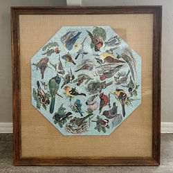 VINTAGE BIRD 500 PIECE PUZZLE IN HEAVY GLASS PANE BURLAP MAT WOODEN HANGING FRAME$10Peoria, AZ
