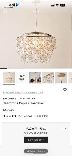 Brand New In Box Capiz Shell Chandelier From CB2 $380Scottsdale, AZ