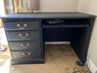 Black Dark Gray Wood Desk Study Table Solid with 3 Drawers Distressed Wood Keyboard$50Fremont, CA