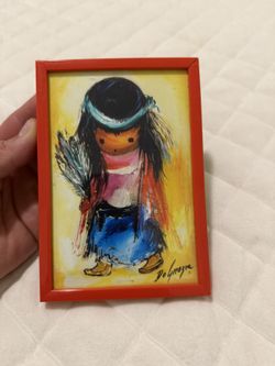 Ted DenGrazia Print "Pima Indian Drummer Boy" Wood Vintage 6.5X4.5 Inch Art$30Federal Way, WA