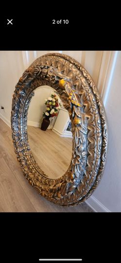 Z Gallerie Large Round Resin Ornate Silver Framed Mirror with Gold Accents$150Scottsdale, AZ