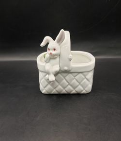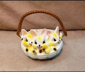 Vintage Ceramic Easter, Bunny Basket With Rattan Handle. Marked 55292$25Mcqueeney, TX