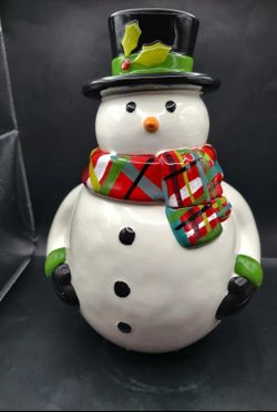 Discontinued 12.5" Christmas Cut-Outs Earthenware Snowman Cookie Jar By: Sue...$45Mcqueeney, TX