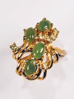 Vintage Jade Ring With Austrian Crystal Accents 18KGP Size 4.5
