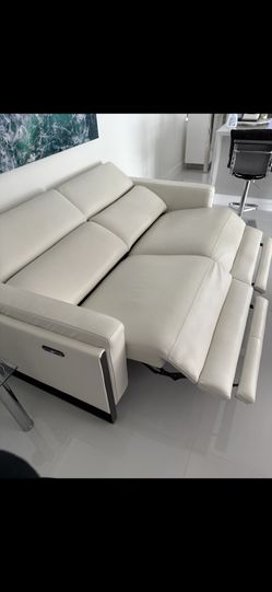 Atlas White Leather/Vinyl Power Reclining Sofa Loveseat Excellent Condition. Adjustable Headrest / Footrest. Dimensions: 63W x 33H x 43.5L. Was $2,400$1,200Pembroke Pines, FL