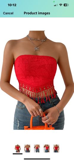 MakeMeChic Women's Boho Floral Jacquard Lace Trim Tie Back Tassel Crop Tube Top$15Los Angeles, CA