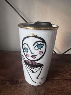 Starbucks Blushing Blue Eyed Girl Ceramic Travel Cup Tumbler 12 Oz 2015$17Aurora, CO