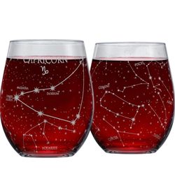 Greenline Goods Capricorn Stemless Wine Glasses Zodiac Capricorn Set Hand Etched 15 oz (Set of 2) - Astrology Sign Glassware$22Edmond, OK