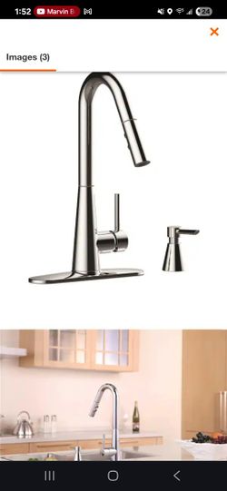 Essen Single-Handle Pull-Down Sprayer Kitchen Faucet with Soap Dispenser in Chrome$45Pasadena, TX