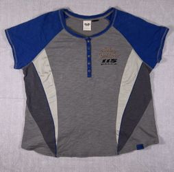 Vintage Harley-Davidson 115th Anniversary Women's Gray and Blue Henley Shirt$15Rockford, IL