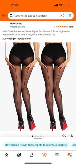 HONENNA Backseam Sheer Tights for Women 2 Pairs High Waist Patterned Cuban Heel Pantyhose With Control Top Medium $14Lakeland, FL