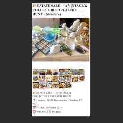 Vintage lovers and collectors - this one's for you! Decades of beautiful items carefully kept and ready for a new home. Come find rare pieces, timeles$1Pasadena, CA