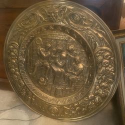 Vintage Brass Colonial Tavern Scene Wall Plaque Chimney Flue Cover 22.5 " Diameter$50Thousand Oaks, CA