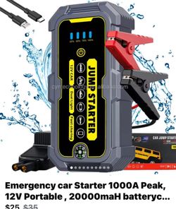 Emergency car Starter 1000A Peak, 12V Portable , 22000maH batterycapacity$25Jersey City, NJ