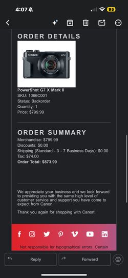 canon g7x mark ii$1,200Westminster, CA