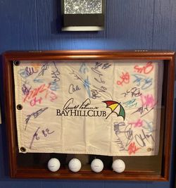 Shadow Boxed Bay Hill Pin Flag Signed by (34) with Vijay Singh, Mike Weir, Justin Leonard, Stewart Cink & 4 ProV1X Balls (Beckett Authenticity )$350North Venice, FL