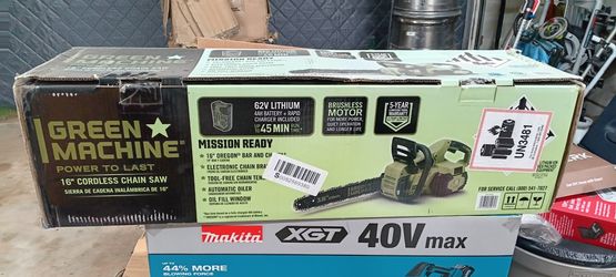Green Machine 62V Brushless 16 in. Battery Chainsaw GMCS6200 (NEW)$240New Caney, TX