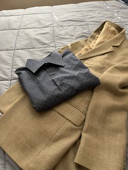 There Is Two Pieces A Jacket in size 38 the color Is Camel and a shirt and size large classic fit the color is blue There For Man’s Both For $40 Total$40Hanover Park, IL