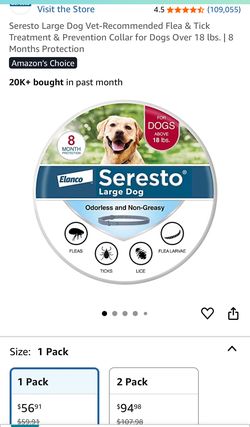 Seresto Large Dog Vet-Recommended Flea & Tick Treatment & Prevention Collar for Dogs Over 18 lbs. | 8 Months Protection$30Laurel, MD