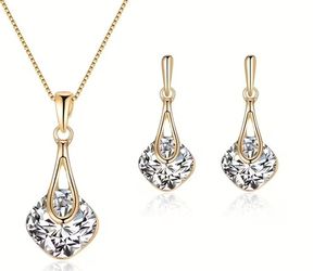 White Golden Jewelry Set With Shinning Square Crystal$25Clarkston, GA