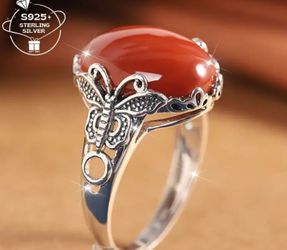 Red Jade Stone Adjustable Ring sterling Silver 925$40Clarkston, GA