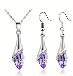 Eye shaped Purple Crystal Jewelry Set Necklace Earrings $25Clarkston, GA
